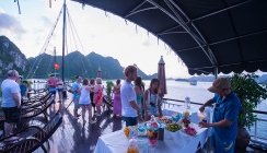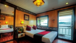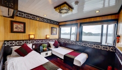Built-in November 2012 with last renovation 2019, this traditional local fishing oriented cruiser brings its own charm and comfort. Featured 10 spacious rooms with wide windows, private modern bathroom, some even have the private balcony, a large sundeck and a cozy restaurant with wide-range of tropical drinks bar with the highest services provides by 13 experienced crew members awaiting you for the unforgettable Halong Bay experiences.