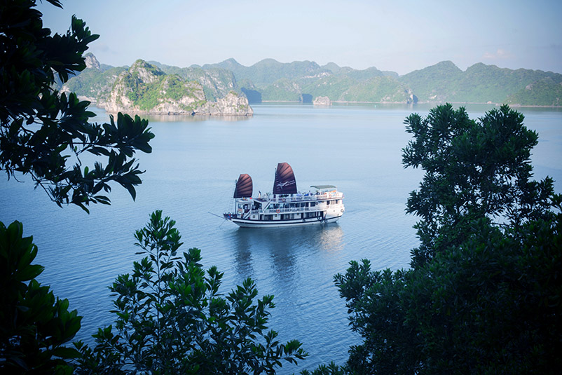 With this in mind, our two, newly built wooden junks are designed in the time-honored traditional style, but with contemporary, deluxe cabins and facilities, including sea-view windows in each cabin, private, modern bathrooms, and a comfortable sundeck bar. Our cooks will serve you the tastiest traditional Vietnamese foods, and our staff will help you learn about our current lives as well as our ancient history.