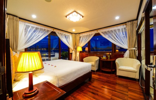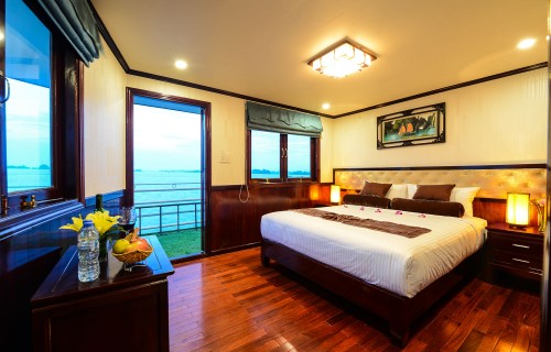 Starlight Cruise Halong cabin is your eyes over Halong Bay. Our rooms featured large sea-view bathroom and private balcony will ensure intimate privacy and comfort for you to enjoy cruising. The traditions and the modern blend harmoniously in distinctive handcrafted woodwork and boutique décor, which allows you to relax in style and makes the most of your Halong retreat.