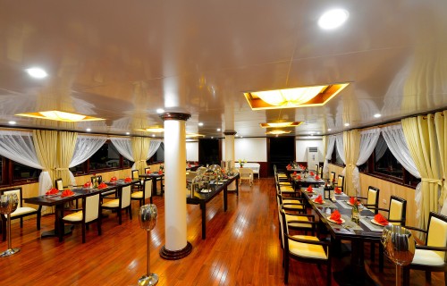 Meals onboard are fusion: Vietnamese, seafood & international. Guests should advise of any special food preferences, allergies or dietary requirements at least one (1) day prior to the cruise date.