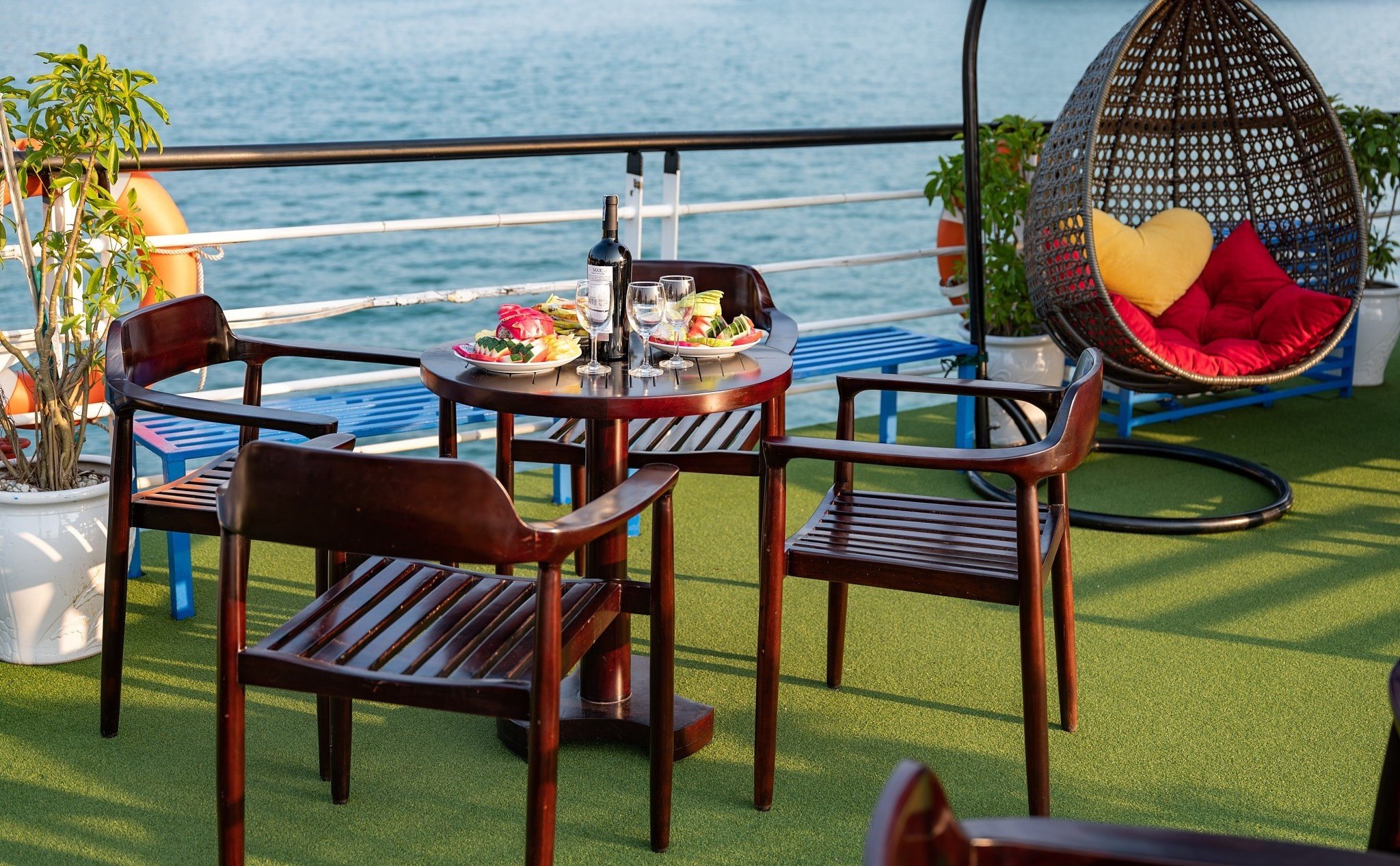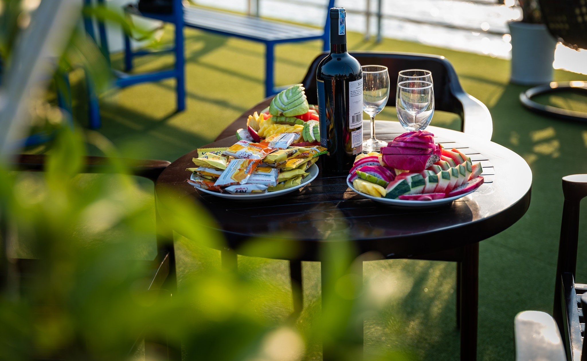 - Sunset Party: Red wine, Tea, Cakes, Shrimp Chips, Fresh Fruits