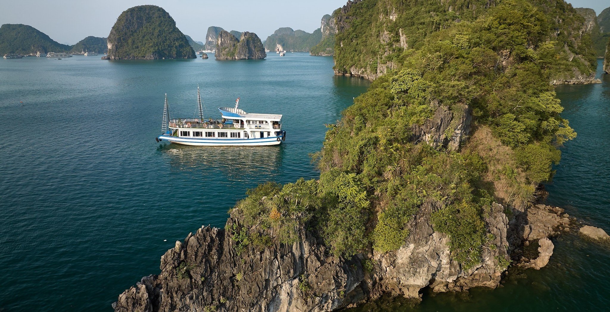 12h00 – 12h30: Arrive Tuan Chau Harbor. We will take you on 6 hour journey via 2 day-sleeper boat cruise route which renowned for its striking, passages uninhabited islets and outcrops have been given imaginative names by the locals, due to their perceived shapes while having lunch on boat.
