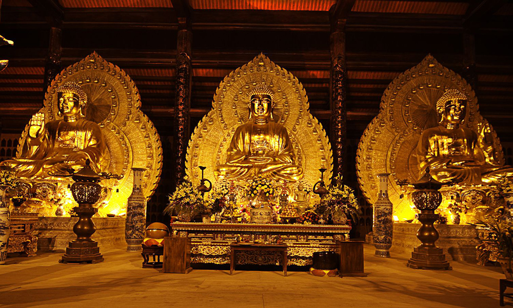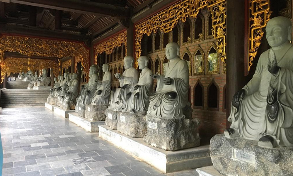 10.30: Arrive in Buddha Prayer place in Bai Dinh Pagoda, the biggest pagoda in Vietnam with 500 La Han statues, biggest bronze Buddha statue in Vietnam with 10 meters in height, 100 tons in weight. Have lunch in local restaurant with some local special dishes such as Goat meat with burned rice, pork storage vessel.