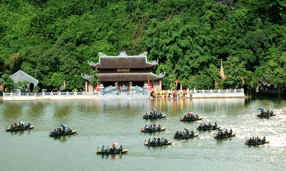 13.00: Depart to the most popular attraction to visit in Ninh Binh are the Trang An Grottoes (the World Natural Heritage site). Arriving Trang An-eco tourism site. In 2 hours you will be surprised by the beauty of this landscape that seems as Halong Bay on land. The bamboo boat will take you through many amazing caves.